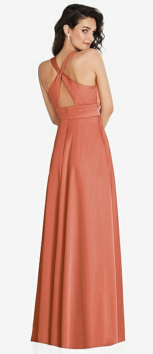 Tie-Back Cutout Maxi Dress with Front Slit in terracotta copper