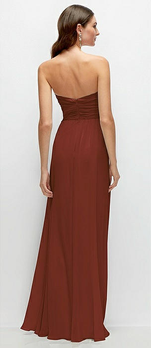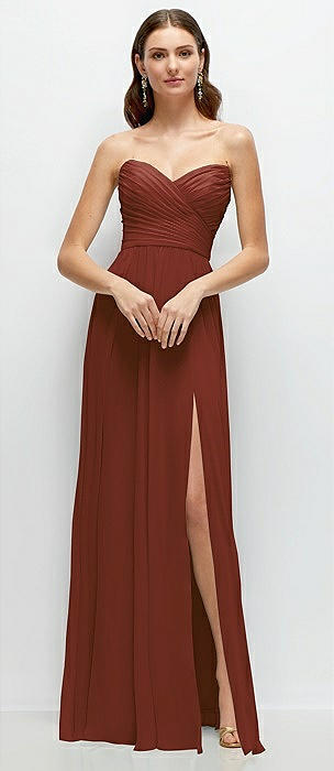 Strapless Pleated Surplice Chiffon Maxi Dress with A-Line Skirt in auburn moon