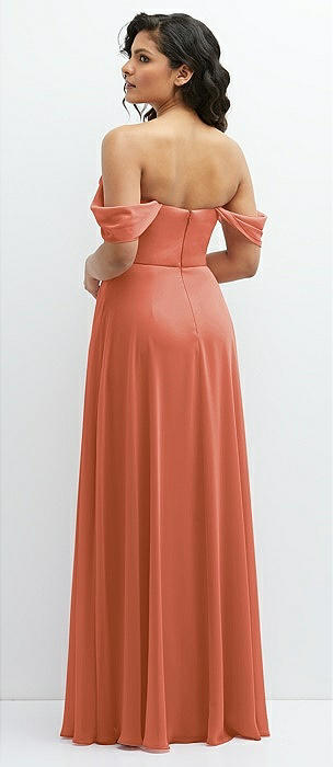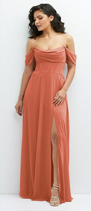 Chiffon Corset Maxi Dress with Removable Off-the-Shoulder Swags in terracotta copper