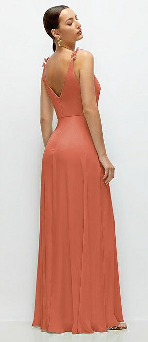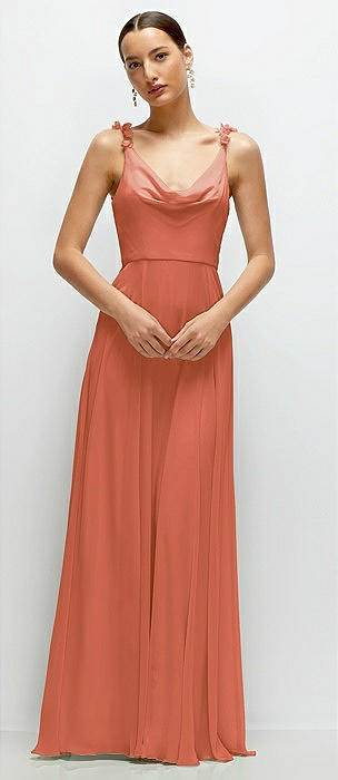 Cowl Neck Chiffon Maxi Dress with Hand-Worked Petal Straps in terracotta copper
