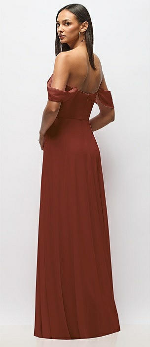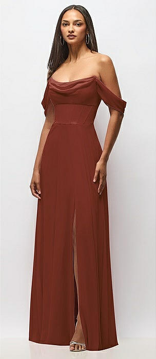 Chiffon Corset Maxi Dress with Removable Off-the-Shoulder Swags in auburn moon