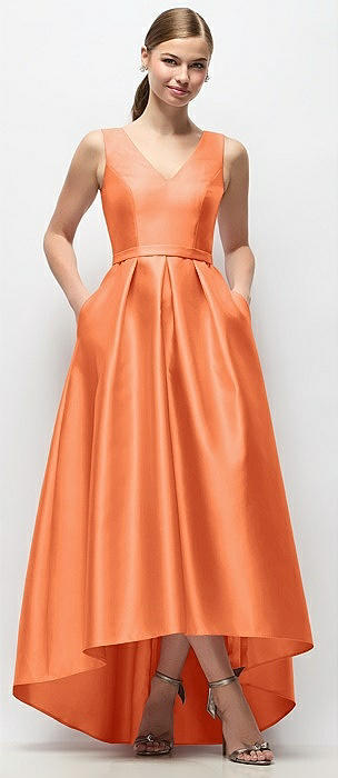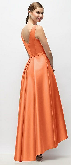 Strapless Satin High Low Dress with Pockets in portofino orange