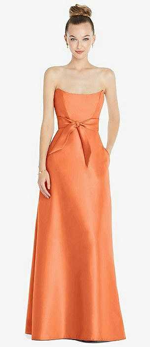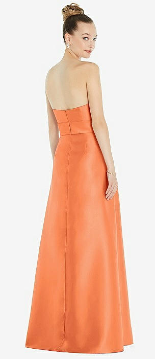 Basque-Neck Strapless Satin Gown with Mini Sash in portofino orange