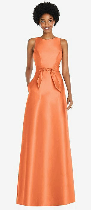 Orange Alfred Sung Inset Waist Bridesmaid Dresses