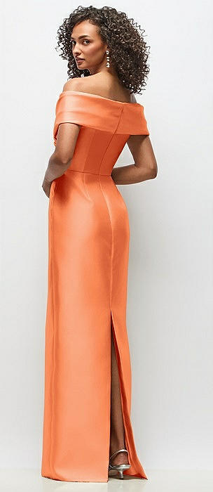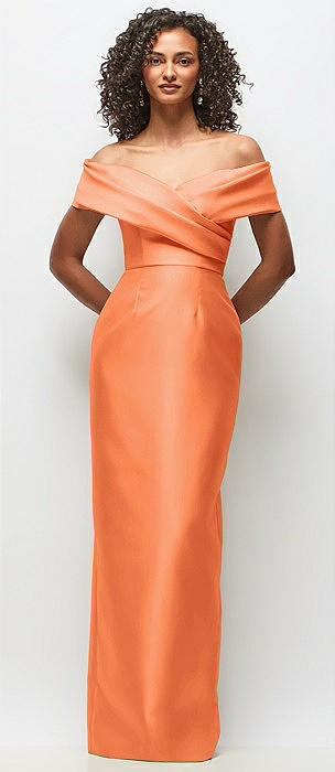 Off-the-Shoulder Draped Wrap Satin Maxi Dress in portofino orange