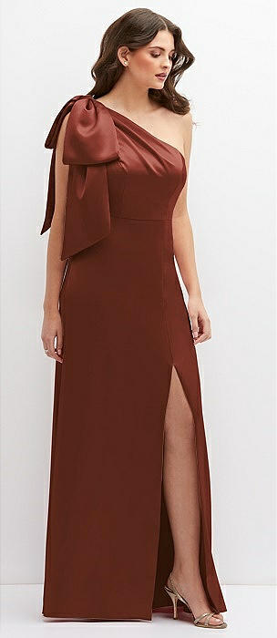 One-Shoulder Satin Maxi Dress with Chic Oversized Shoulder Bow