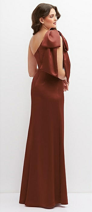 One-Shoulder Satin Maxi Dress with Chic Oversized Shoulder Bow