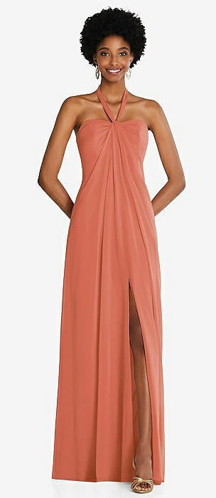 Draped Chiffon Grecian Column Gown with Convertible Straps