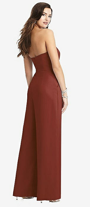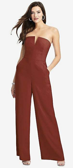 Strapless Notch Crepe Jumpsuit with Pockets in auburn moon