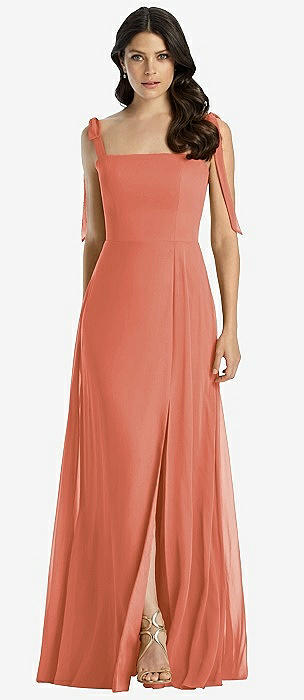 Tie-Shoulder Chiffon Maxi Dress with Front Slit