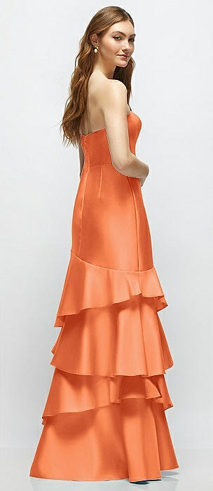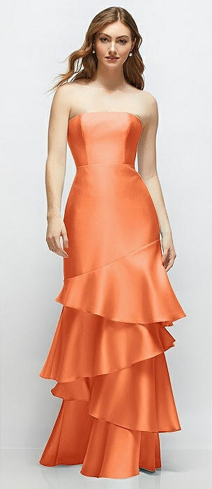 Strapless Bodycon Maxi Dress with Tiered Ruffle Skirt in portofino orange