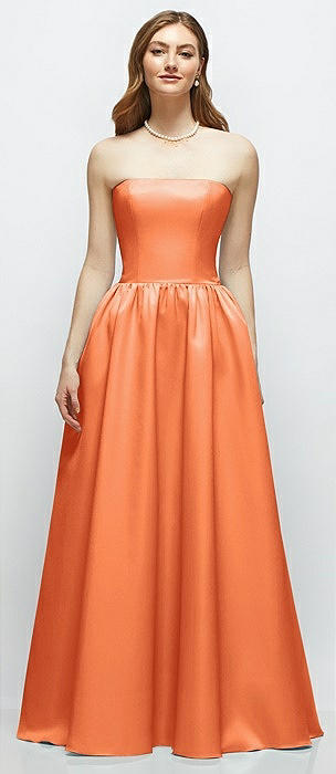 Strapless Satin Drop Waist Gown with Full Skirt in portofino orange
