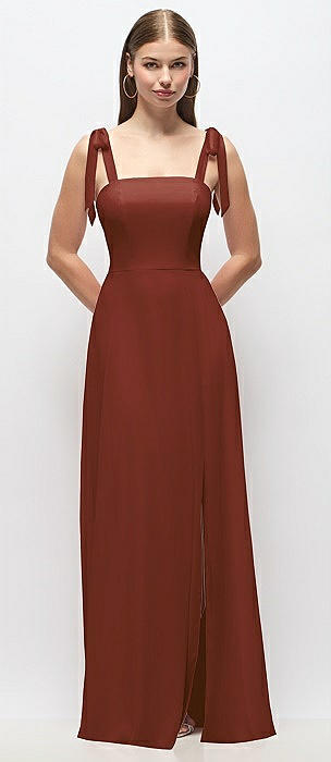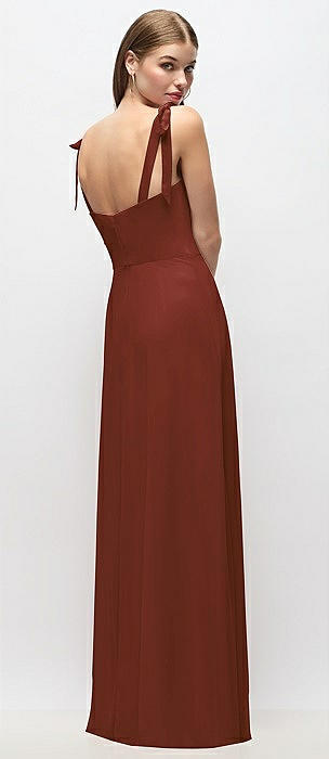 Tie-Shoulder Chiffon Maxi Dress with Front Slit in auburn moon
