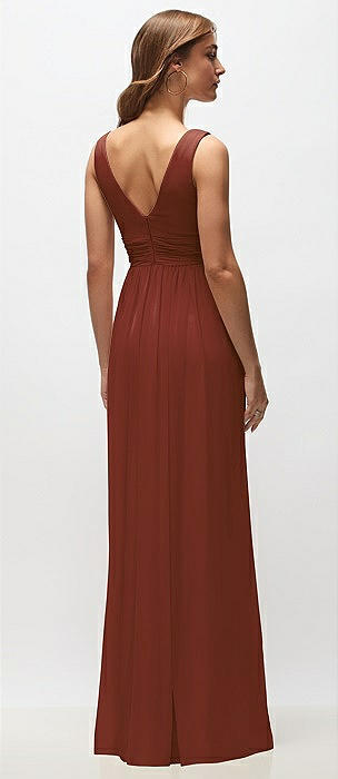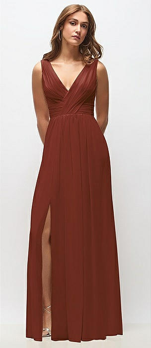 Sleeveless Draped Chiffon Maxi Dress with Front Slit in auburn moon