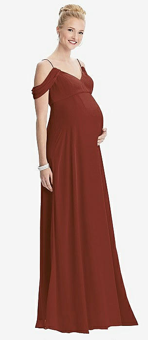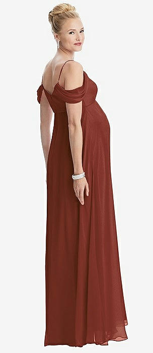 Draped Cold-Shoulder Chiffon Maternity Dress in auburn moon