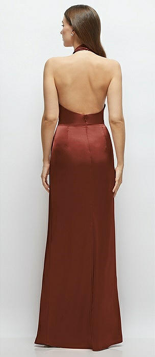 High Halter Tie-Strap Open-Back Satin Maxi Dress
