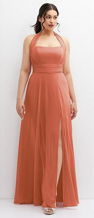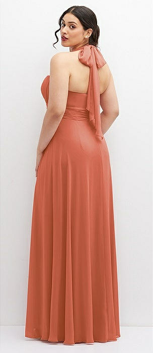 Chiffon Convertible Maxi Dress with Multi-Way Tie Straps in terracotta copper