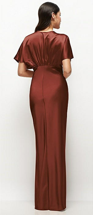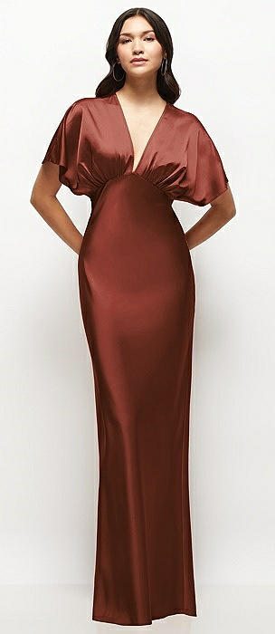 Plunge Neck Kimono Sleeve Satin Bias Maxi Dress in auburn moon