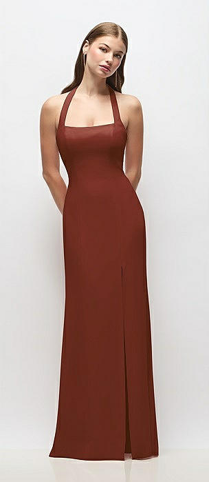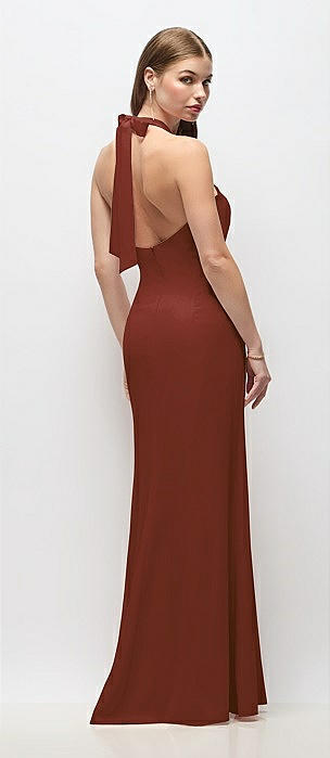 Tie Halter Open Back Trumpet Gown in auburn moon