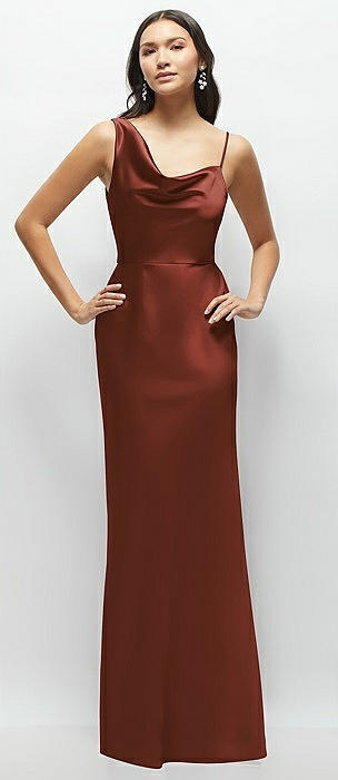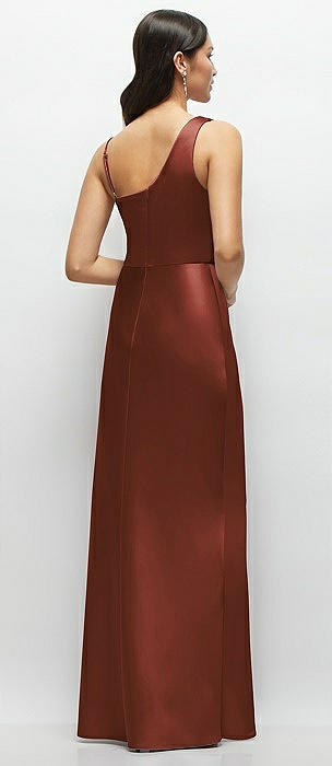 One-Shoulder Draped Cowl A-Line Satin Maxi Dress in auburn moon