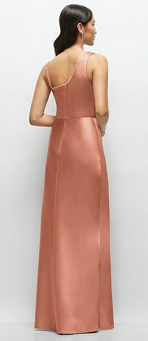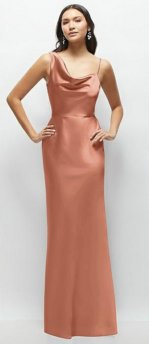 One-Shoulder Draped Cowl A-Line Satin Maxi Dress in copper penny