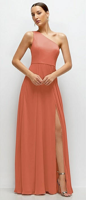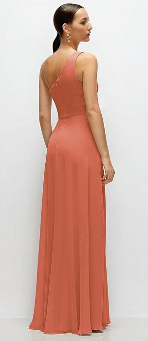 Chiffon One-Shoulder Maxi Dress with Circle Skirt in terracotta copper