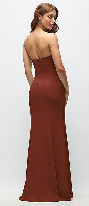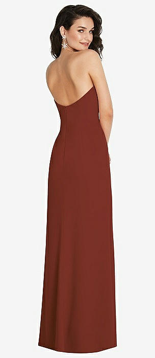 Strapless Scoop Back Maxi Dress with Front Slit in auburn moon