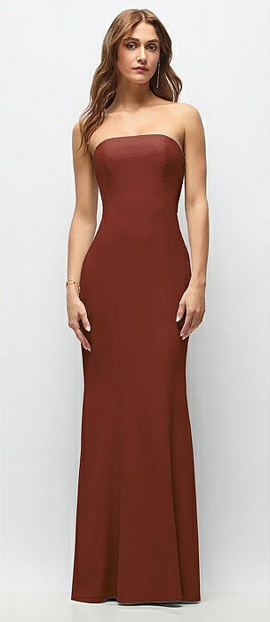 Strapless Fit and Flare Crepe Maxi Dress in auburn moon