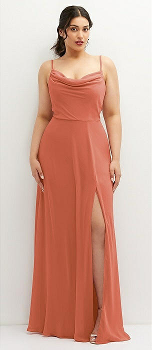 Soft Cowl-Neck A-Line Maxi Dress with Adjustable Straps