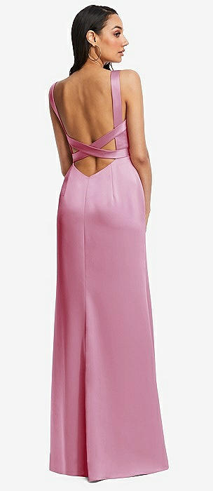 Cowl-Neck Open Tie-Back Stretch Satin Mermaid Dress with Slight Train in desert rose