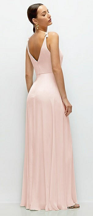 Cowl Neck Chiffon Maxi Dress with Hand-Worked Petal Straps in blush