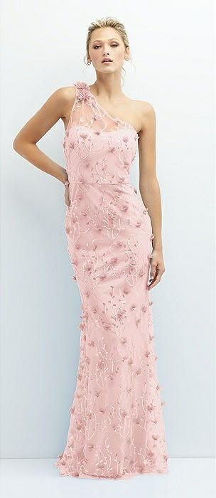 One-Shoulder Fit and Flare 3D Floral Embroidered Dress in rose