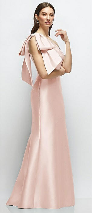 Bow One-Shoulder Satin Maxi Dress with Trumpet Skirt in blush