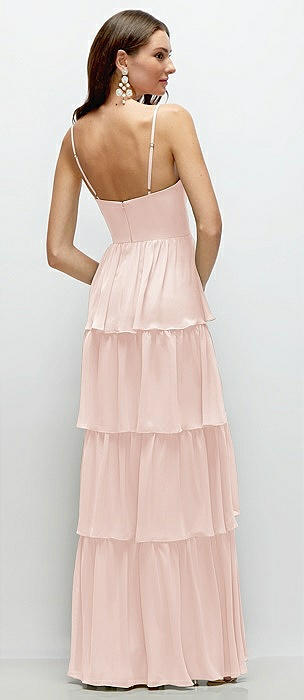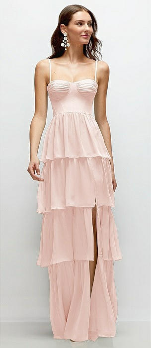 Bustier-Style Chiffon Tiered Ruffle Maxi Dress with Adjustable Straps in blush