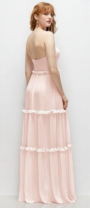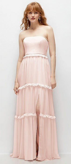 Strapless Chiffon Maxi Dress with Tiered Micro Ruffle Full Skirt in blush