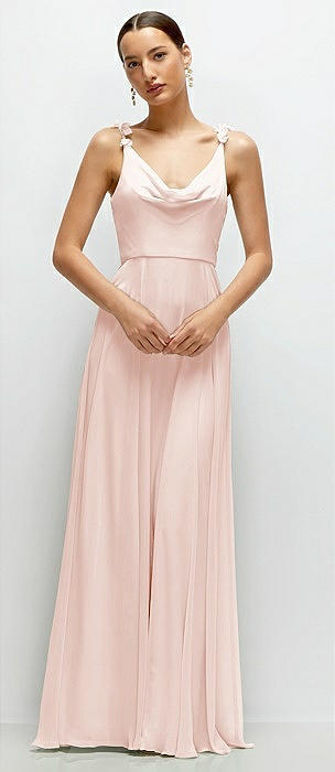 Cowl Neck Chiffon Maxi Dress with Hand-Worked Petal Straps in blush
