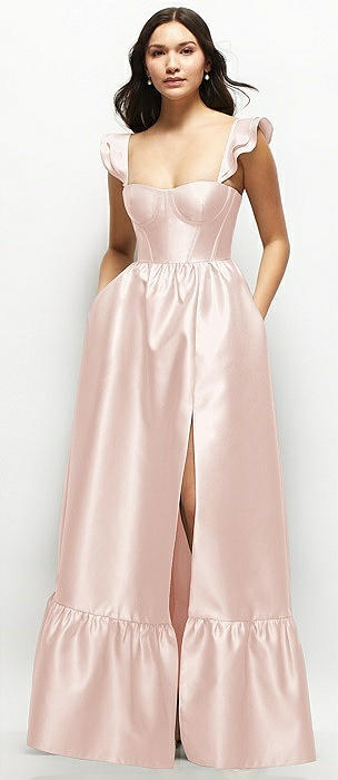 Satin Corset Maxi Dress with Ruffle Straps & Skirt in blush