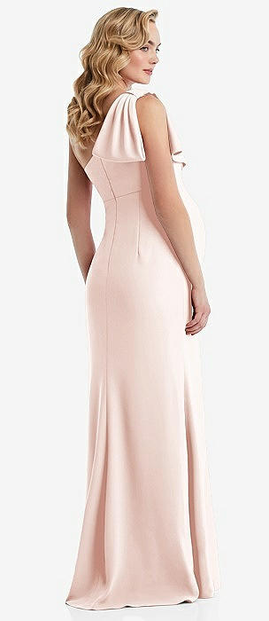 Wide Strap Square Neck Maternity Trumpet Gown in blush