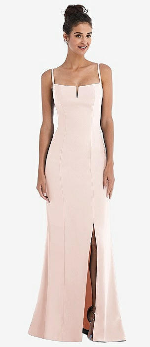 Notch Crepe Trumpet Gown with Front Slit in blush