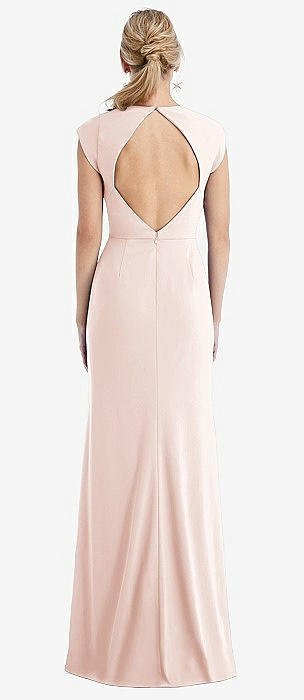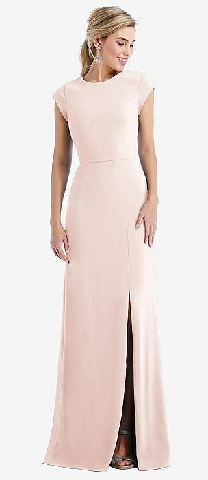 Cap Sleeve Open-Back Trumpet Gown with Front Slit in blush