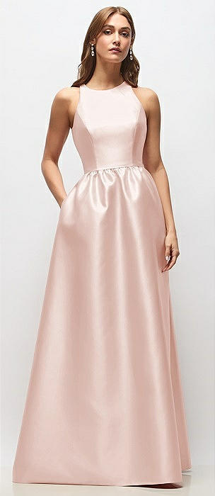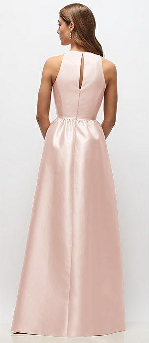 Sleeveless Keyhole Back Satin Maxi Dress in blush