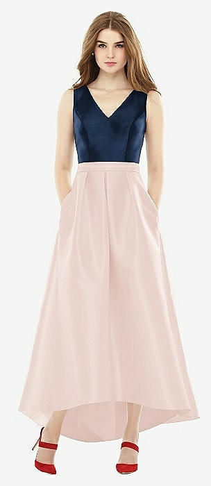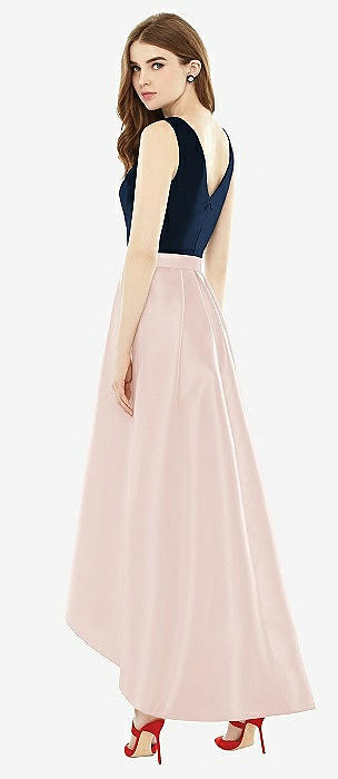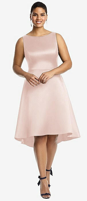 Bateau Neck Satin High Low Cocktail Dress in blush
