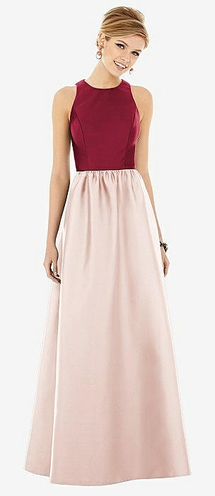 Sleeveless Keyhole Back Satin Maxi Dress in blush