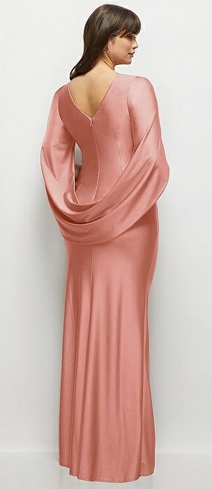 Draped Stretch Satin Maxi Dress with Built-in Capelet in desert rose