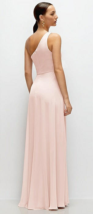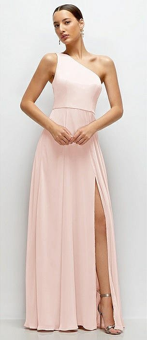 Chiffon One-Shoulder Maxi Dress with Circle Skirt in blush