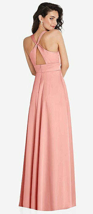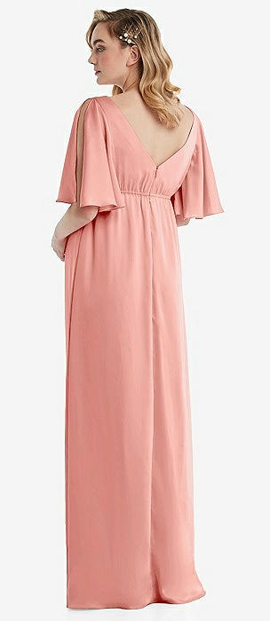 Shirred Shoulder Criss Cross Back Maxi Dress with Front Slit in rose