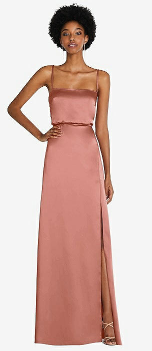 Spaghetti Strap Draped Skirt Gown with Front Slit in desert rose