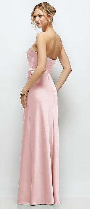 Strapless A-Line Stretch Satin Maxi Dress in ballet pink