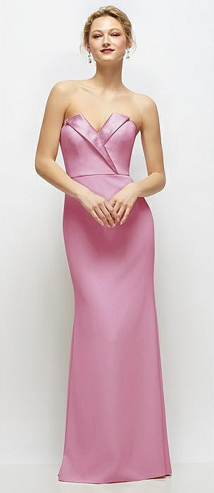 Strapless A-Line Stretch Satin Maxi Dress in ballet pink