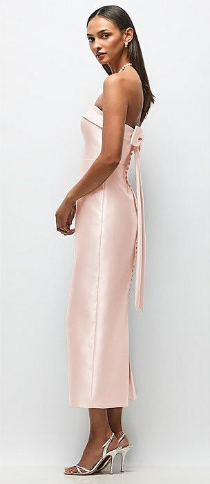 Strapless Cuff Satin Midi Dress with Column Skirt & Back Bow in blush